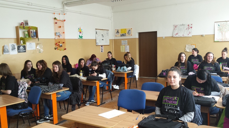 Fotografii de la sesiunile de prezentare susținute pentru tineri la Colegiul Economic ”Gheorghe Dragoș” și la Colegiul Tehnic ”Elisa Zamfirescu”, ambele din municipiul Satu Mare, ca parte a traseului caravanei în regiunea Nord-Vest.